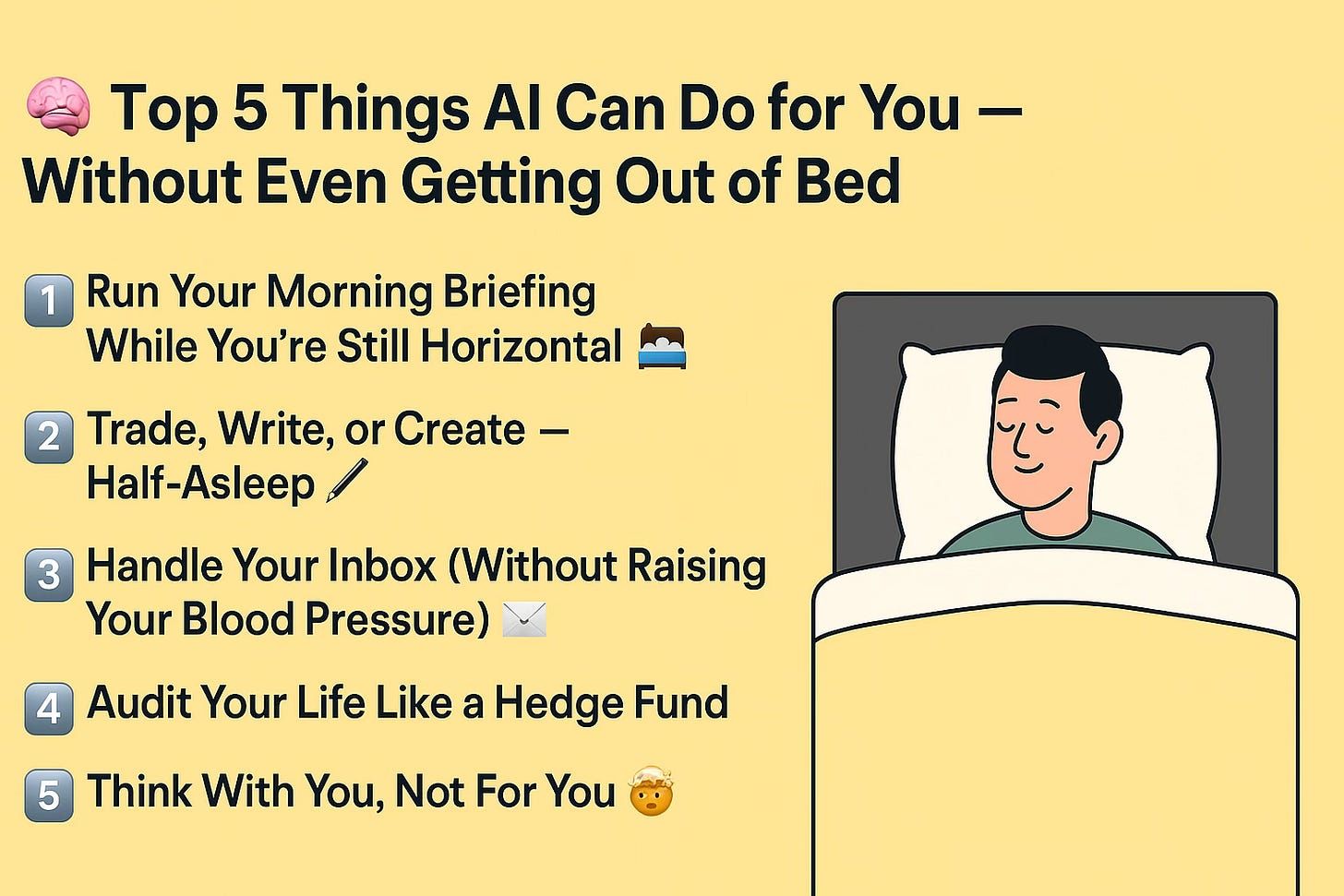 - 🧠 Top 5 Things AI Can Do for You — Without Even Getting Out of Bed